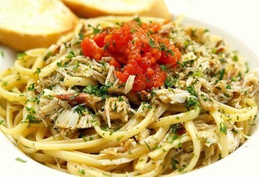 Tasty crab linguine with fresh parsley and chili