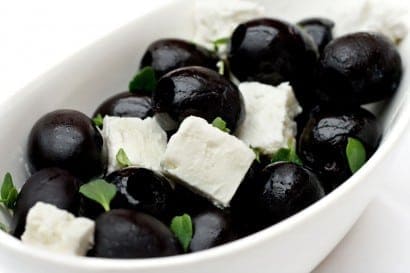 Throw the feta and olives together and mix well.