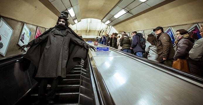The Babadook himself took to the streets and underground of London to promote the DVD release of Australian horror film, The Babadook, on Monday.