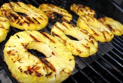 We deep fry it, put it on our pizzas and in our burgers, but on the barbecue is where pineapple really belongs. Lightly grilled, dusted with sugar and topped with ice cream, it makes for a delicious end to a protein rich meal. Peaches and mango also work a treat.