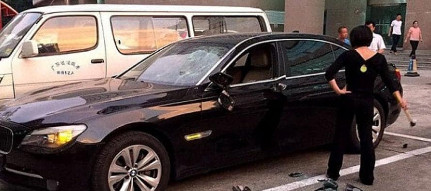 This woman from China spotted her hubby carting what she said is his mistress around and decided to ‘cleanse the car’ as it had become ‘too dirty, a car that’s used by a whore is too dirty.’