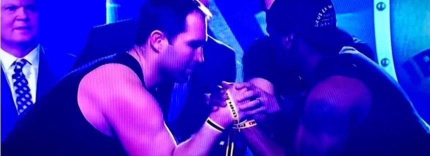 So Ben Ross and Wendell Sailor – both ex Aussie National Rugby League players – took part in a live arm wrestling match on Channel 9; what happens next is really gross and makes your bones itch… like when you chew on synthetic material.