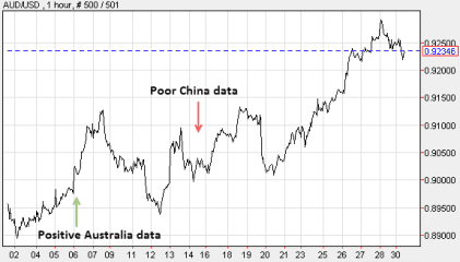We know the Chinese economy, due to its demand for our resources, is important to the Australian economy but does it have more influence over the Aussie dollar than our own economic data?