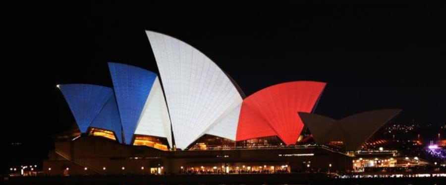 Australia expressed its solidarity with France in the wake of the terror attacks in Paris, joining the world in illuminating some of its most recognisable landmarks in the colours of the French flag.