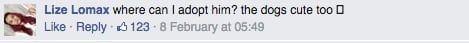The picture (above) on Pet’s Haven Animal Shelter’s Facebook page has to date raked in about 17,000 likes. The comments are priceless.