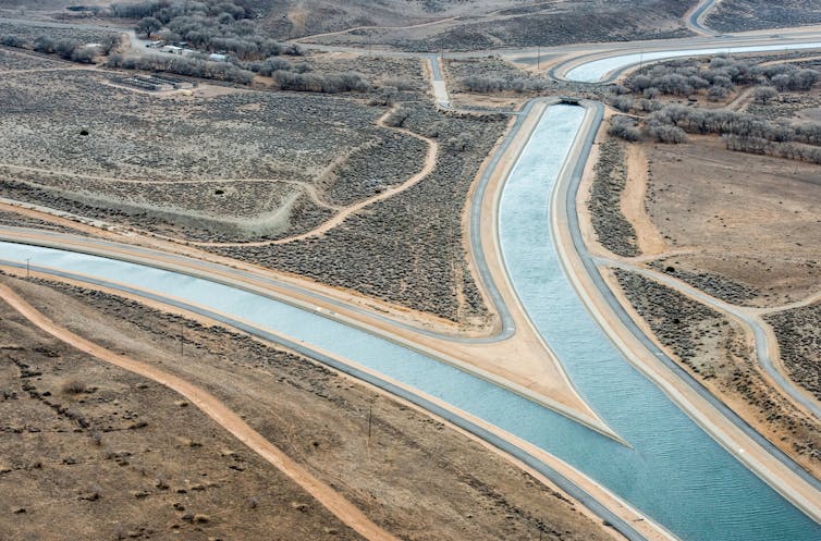 Most of California’s rain and snow falls north of Sacramento during the winter, while 80% of its water use occurs in Southern California, mostly in summer. That’s why canals snake across the state – it’s the largest such system in the world. We estimate that about 1%-2% of the water they carry is lost to evaporation under the hot California sun.