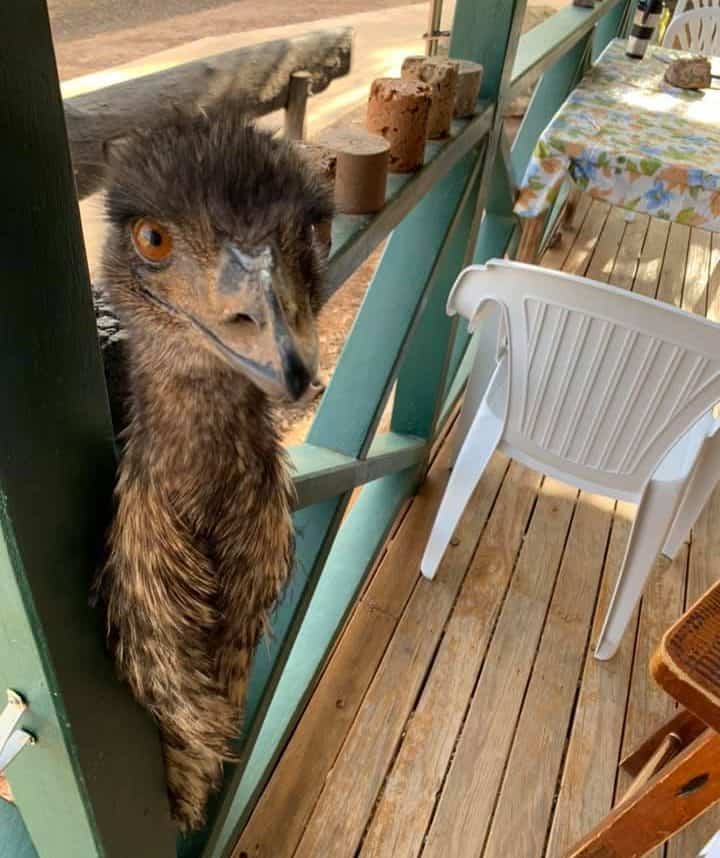 Kevin and Carol are emus who have lived at Yaraka since they hatched in 2018, and they clearly feel that the pub and its customers, whether locals or tourists, are part of their territory.