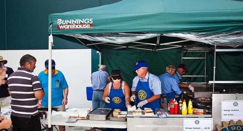 TOP IMAGE: The classic Bunnings sausage sizzle. (Henk Tobbe (vk2gwk) – https://www.flickr.com/photos/vk2gwk/ [CC0], via Wikimedia Commons)