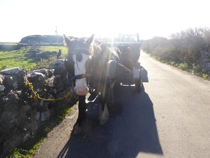 Inishmore has few sheep or pigs but a good number of cattle and over 100 horses which are important during the tourist season. There are also several dozen Connemara ponies. Colonies of seals are a common sight as are puffins.