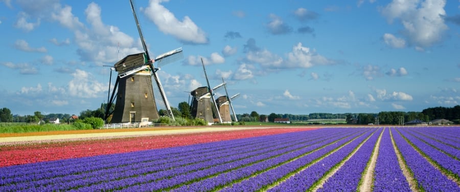 Rows of tulips and other flowers can be seen in the surrounding fields from Keukenhof’s windmill that once stood in Groningen. South of Leyden lies Schiedam whose five windmills are the world’s highest, led by the North one at almost 27 metres. In times past, there were 20, most of which ground corn for as many as 188 local distilleries.